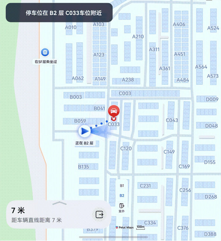 像有些阛阓撑合手室内高精定位,花瓣舆图还不错使用原路复返寻车功能。唯有点开泊车卡片启动寻车,系统就会露馅你那时从哪个电梯下来的,随着请示走就行,再也无谓纠结是坐错电梯梗概走错标的绕远路了,找车截止径直up。