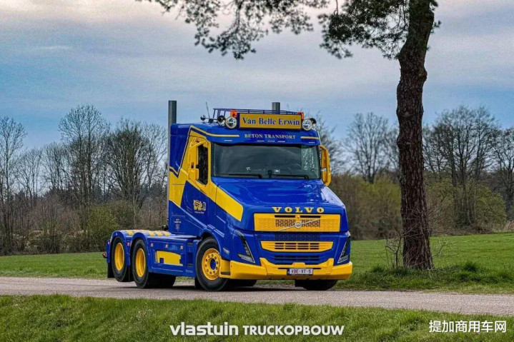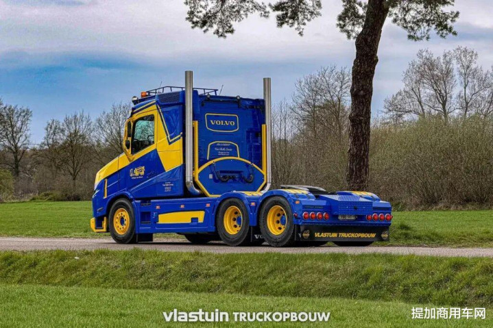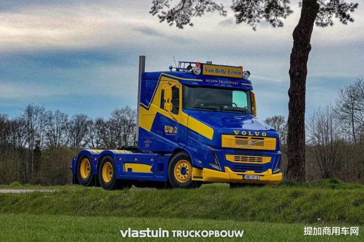 “VT5”指的是由荷兰Vlastuin Truckopbouw改装厂基于沃尔沃FH立异的长头卡车。自2022年以来,该公司一直对广受宽饶的FH进行此类改装。本次展示的车辆已是请托给客户的第十九台,同期亦然第一款剿袭更偏向土产货化、面向开导用途树立的车型。