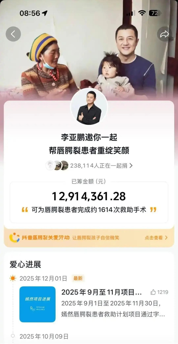 面对扑面而来的捐款,李亚鹏也做了说明和承诺,医院是独立的,所有捐款只能用于唇腭裂手术救助,绝对不会用来支付租金,他表态,这些钱的使用会接受外界监督,到2026年底,他会把成果拿出来给社会一个交代,他保证,医院关不关门,他都会尽力帮助患儿家庭。