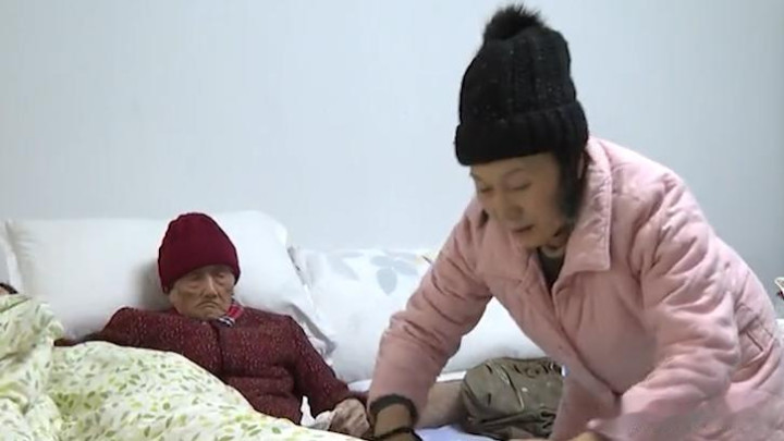 98岁的周凤莲没想到自己操劳付出了一辈子,到最后只有最小的女儿丁美英愿意照顾她,把她从大儿子家的猪圈里接出来,给她吃饱穿暖,擦洗的干干净净的,还给她治脸上的伤。