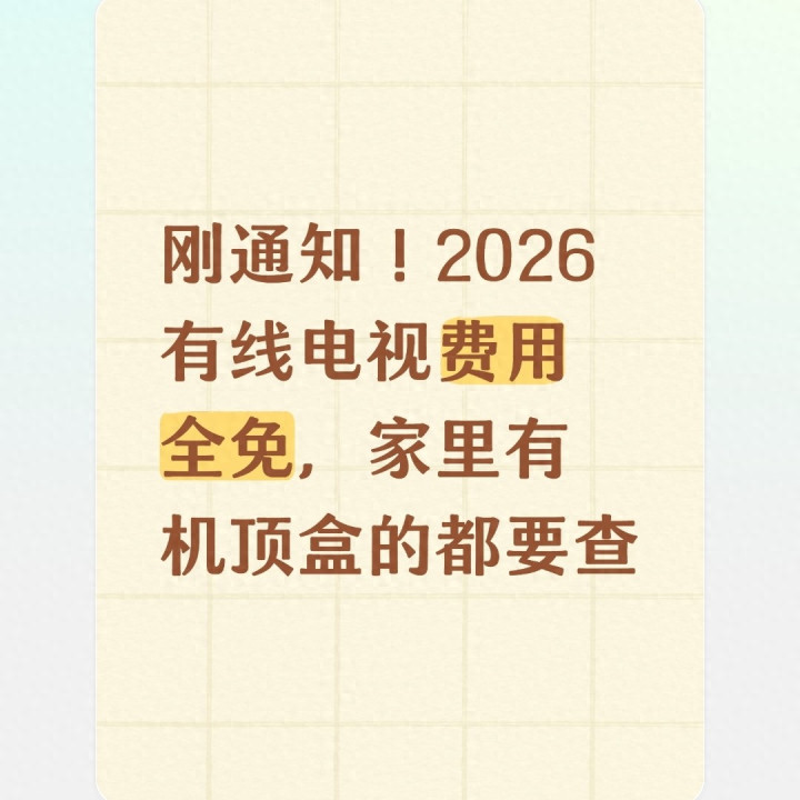 2026年一开春,一条关乎家家户户的重磅音信迅速传遍寰球——有线电视用度迎来全面全免!当年每个月按期交、每年续着付的机顶盒用度,倏得传来免费的讲述,让无数家庭又惊又疑。不少东说念主第一响应就合计:这是确凿吗?会不会有套路?是不是只针对特定东说念主群?还有东说念主惦念免费之后信号变差、做事缩水,以至被骗子钻空子。今天就把这件事透顶讲透,从战略真相、免费限制、自查门径、办理经由到避坑指南,全地点拆解,让巨匠看得清、办得顺、不踩坑,把这份实确凿在的惠民福利稳稳拿得手。