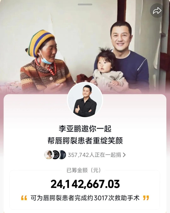 此前,不少曾经受过嫣然天使基金帮助的唇腭裂患者在社交平台发声,呼吁大众伸出援手。截至发稿,由嫣然天使基金发起的一个项目捐赠人数已超35万人,收到的公众捐款已超2400万元,可为唇腭裂患者完成超3000次救治手术。