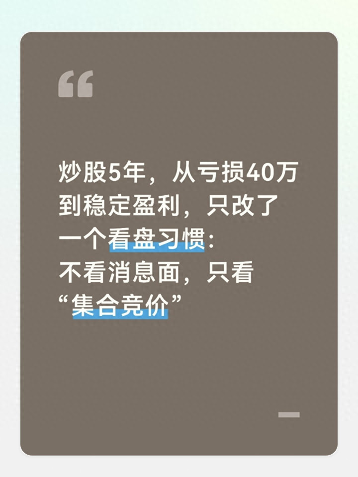 “聚合竞价不是圣杯,仅仅一个器具,一个帮你看清主力意图、过滤伪善音问、擢升胜率的器具。确凿的盈利,来自于严格的纪律、邃密的心态、合理的仓位料理,而不是一个简便的看盘俗例。”